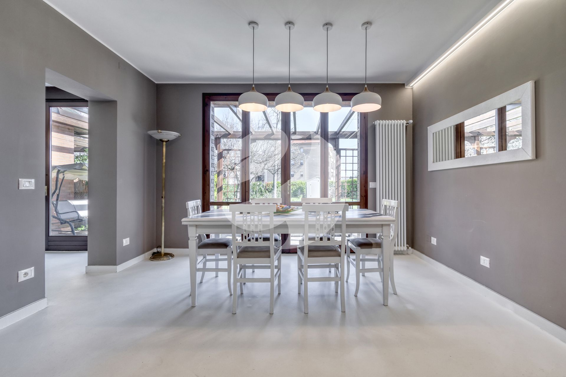 Num contexto residencial reservado e rodeado de vegetação, caracterizado pela presença de moradias e casas de campo que garantem privacidade, silêncio e uma elevada qualidade de vida, colocamos à venda uma elegante moradia geminada com cerca de 192 m2, inserida num ambiente exclusivo e bem cuidado. O acesso à propriedade é feito através de um caminho de acesso privado com portão pedonal que conduz a um amplo jardim de cerca de 450 m2, disposto em três lados da casa (norte, sul e este). A tripla exposição garante uma excelente luz natural ao longo do dia e uma óptima ventilação dos interiores.A casa, completamente renovada em 2023, tem dois pisos. No rés do chão, a entrada conduz a um corredor que distribui harmoniosamente os espaços: à direita há uma ante-sala com zona de lavandaria e engomadoria e uma primeira casa de banho envidraçada com cabine de duche, enquanto à esquerda há acesso a um espaçoso roupeiro com escritório adjacente, que também tem uma entrada independente do jardim. Completam o piso uma luminosa sala de estar com acesso direto ao exterior e uma cozinha habitável, também ligada ao jardim, onde existe uma agradável pérgula ideal para refeições ao ar livre quando o tempo está bom. O piso superior alberga três quartos duplos, um dos quais com acesso direto a um terraço privado, bem como uma grande casa de banho envidraçada com cabina de duche ao nível do chão e vista para um segundo terraço. A propriedade está equipada com acabamentos e instalações de alto nível, incluindo pavimentos contínuos de resina que caracterizam todas as divisões, incluindo a escada interior com corrimão de madeira, garantindo a continuidade visual e a facilidade de manutenção. As caixilharias são em madeira com vidros duplos e portadas, o aquecimento é feito por radiadores alimentados por uma bomba de calor e o sistema de ar condicionado quente e frio é canalizado e integrado no teto falso, completado com ventilação mecânica controlada para purificação do ar em toda a casa. No exterior, um toldo manual semi-retrátil torna o espaço ainda mais funcional e habitável. O imóvel não tem despesas de condomínio, está equipado com instalações de série e dispõe de um espaço dedicado ao estacionamento. A renovação, efectuada inteiramente em 2023 com grande atenção aos detalhes e ao conforto de vida, valoriza todas as divisões e a casa é posta à venda parcialmente mobilada.A geolocalização do imóvel pode ser aproximada.Tel. ****** - EDEN HOUSE
